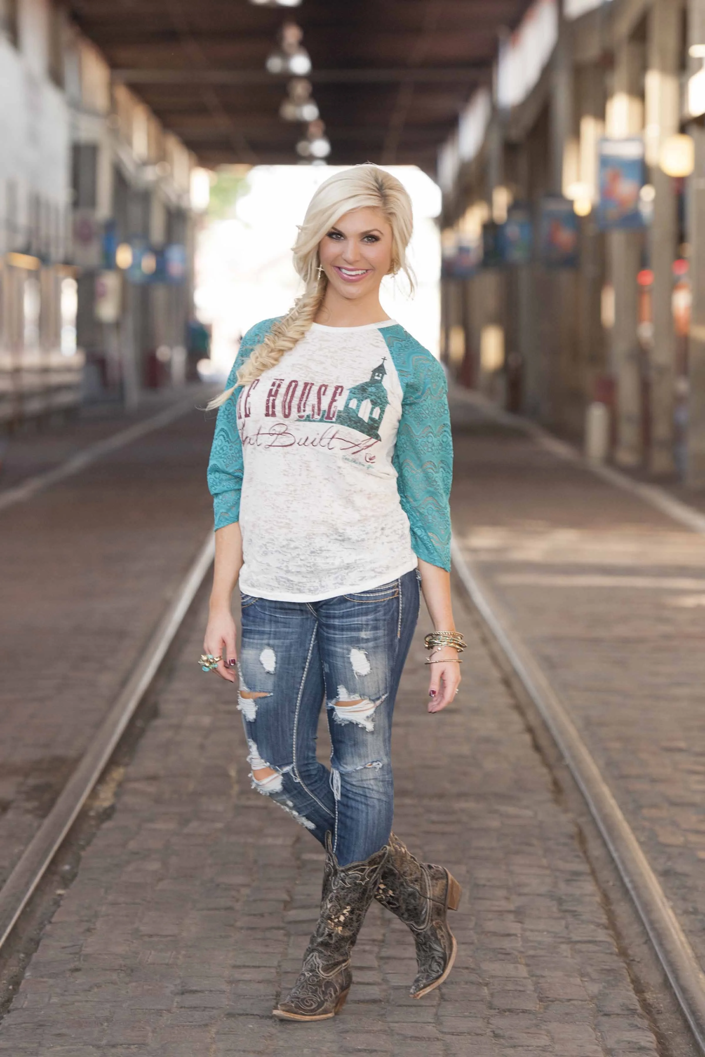 "The House the Built Me" ... isn't this just the cutest! Cozy, Stylish, Clever lil' saying... with lace sleeves! Love Love Love! Praise Jesus and Thanks Miranda Lambert ;)